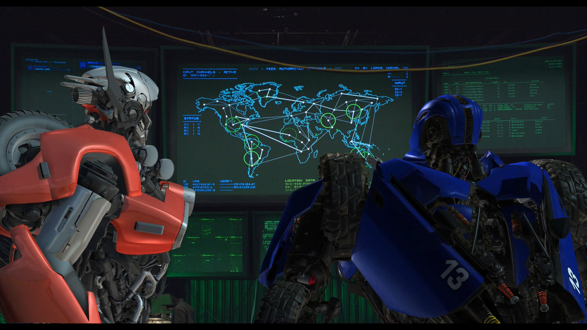◎ Decepticons Inspect the Armory: 섹터 7의 창고에서 대기 중이던 디셉티콘 셉터와 드롭킥이 미군들의 무기를 보면서 수다를 떠는 장면. CG의 후처리 작업 전에 삭제된 탓인지 초기 CG 상태로 수록되어 있다.