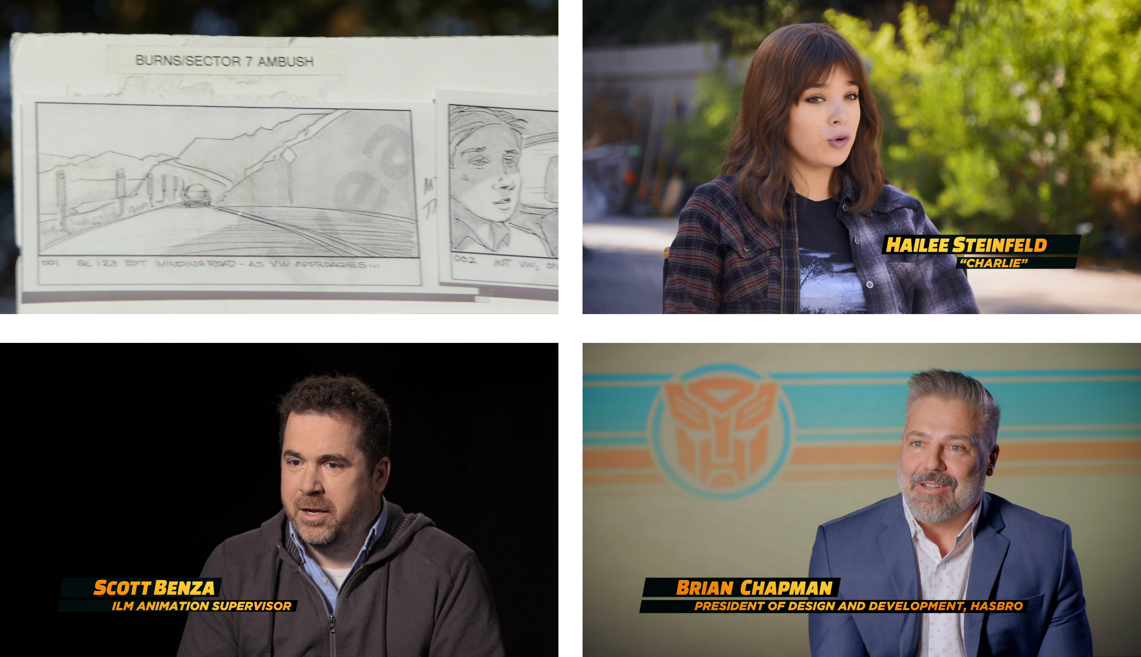 ‘The Story of Bumblebee’는 짧지만 꽤 중요한 부가영상으로 범블비가 과연 어떤 캐릭터인가를 설명하는 내용이 담겨 있다. 트래비스 나이트 감독이 생각하는 [범블비]는 범블비의 여정이 시작되는 과정을 보여주는 작품으로, ‘우리가 아는 범블비’가 어떻게 만들어지는지를 보여주는 것이라고 설명한다. 얼마나 은유적으로, 얼마나 현실적으로 범블비가 자신의 목소리를 찾느냐가 영화의 주요 포인트 중 하나였다고.