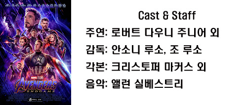 꼭 극장에서 보시기 바랍니다. 가급적 두 번 보세요. 이런 영화를 또 극장에서 접할 기회는 흔치 않습니다. 마블의 가장 위대한 역사 중 한 페이지에 내가 함께 한다는 사실 자체가 큰 의미를 부여하는 순간입니다.