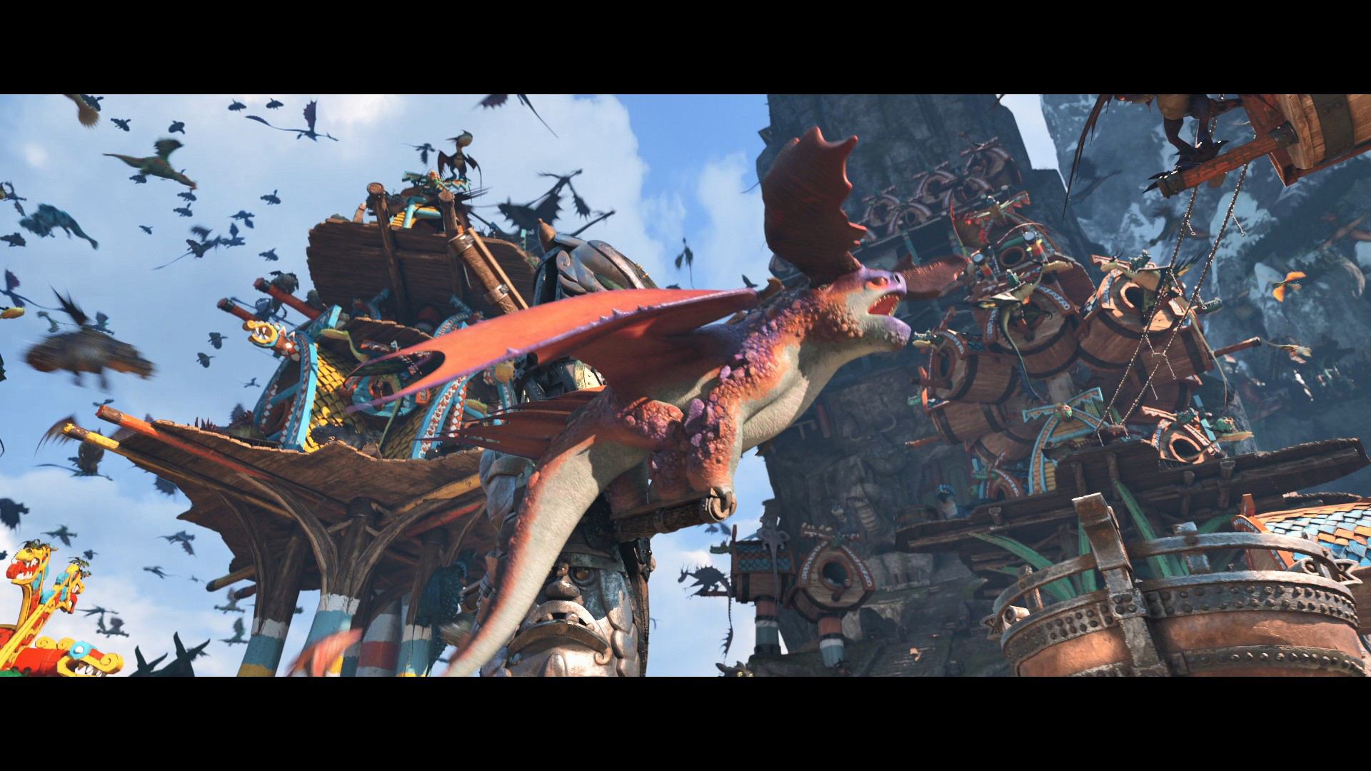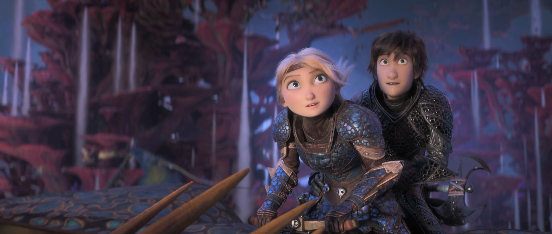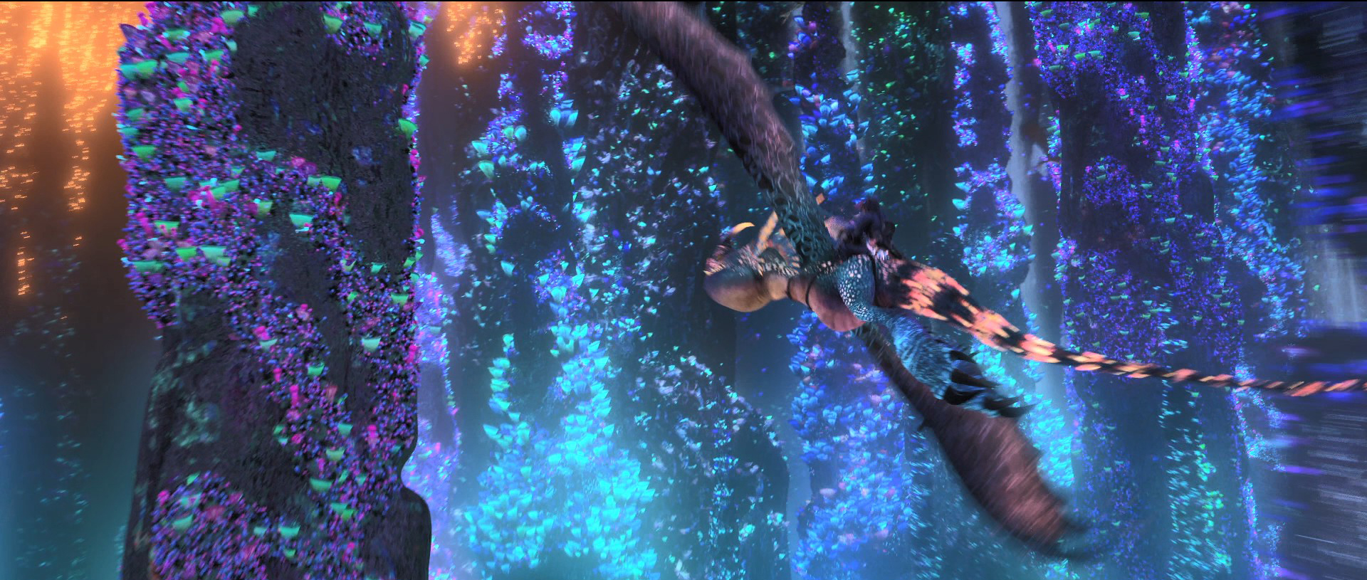 3D 콘텐츠의 활용 면에서 모범적인 방안을 제시했던 1편처럼, [드래곤 길들이기]는 시리즈를 거듭하며 기술적인 진보를 보여준다. 물론 처음만큼의 신선한 충격은 많이 상쇄된 느낌이지만 여전히 드래곤의 활강 장면은 뛰어난 시각적 황홀경을 선사한다. 여기에 수만 마리의 드래곤이 떼지어 등장하는 히든 월드의 비주얼은 본 작품의 메인 이벤트라 해도 과언이 아니다.