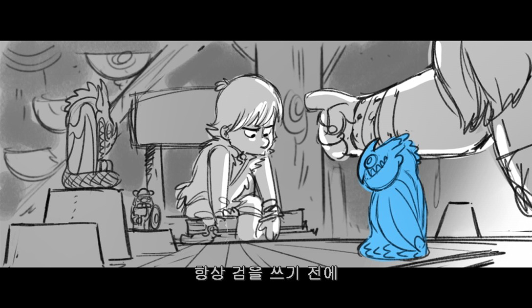 ▷Mind Before the Sword : 히컵의 어린 시절 아버지와 체스를 두면서 검을 쓰기 전에 머리를 먼저 쓰라는 가르침을 받는 장면.