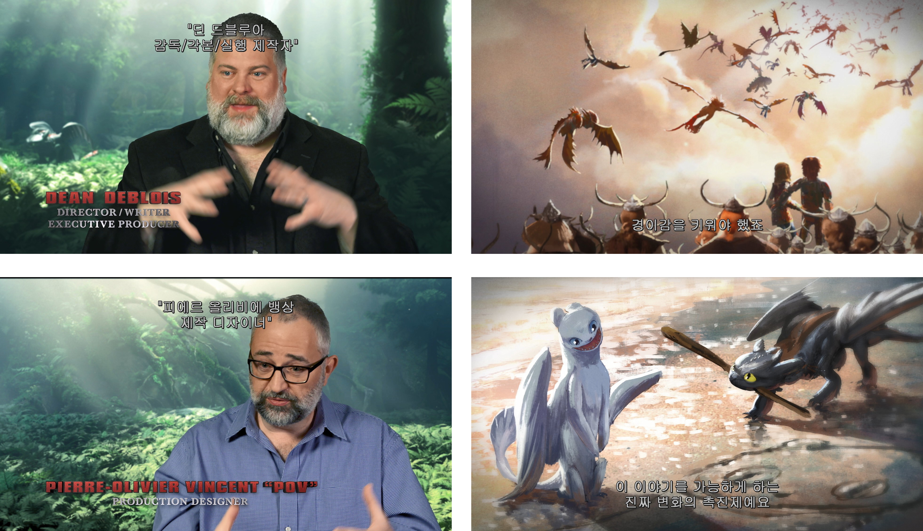 하나만 더 소개하자면 ‘Creating an Epic Dragon Tale’은 메이킹 영상으로서 3편을 만들 때 어떤 부분에 주안점을 두었는지를 확인 할 수 있다. 스케일을 확장하되 그 중에서도 경이감에 초점을 두었다고 한다. 또한 모험보다는 관객들의 감정을 자극하는 부분에 관심을 가지게 되어 영화를 보다 로맨틱한 작품으로 만들기 위해 노력했다고.