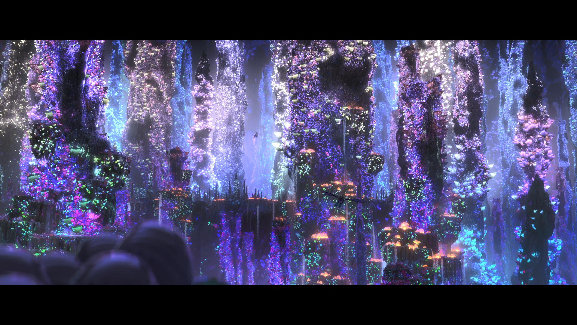 이번 작품에서는 실시간으로 변화되는 빛의 흐름을 랜더링해 주는 ‘Moonray’ 엔진을 도입했다. 때문에 자연광에 기반한 빛과 그림자의 효과를 그대로 반영할 수 있어서 사물의 질감과 입체감이 더욱 사실적으로 드러나는 느낌을 주는 듯 하다. [아바타]의 나비 행성을 보듯 형형색색의 광원 역시 풍부한 색감으로 표현된다.