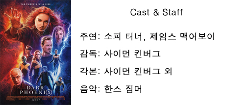 사실 [엑스맨: 데이즈 오브 퓨쳐 페스트]때만 하더라도 [엑스맨] 프렌차이즈의 가능성은 무궁무진했습니다만 [엑스맨: 아포칼립스]로 기대치를 많이 깎아 먹기도 했었죠. 브라이언 싱어가 떠나고 각본가 출신의 제작자 사이먼 킨버그가 연출 전면에 나선 [엑스맨: 다크 피닉스]는 제작 당시에도 재촬영과 개봉연기로 인해 끊임없는 구설에 올랐던 작품입니다. 대게 이런 경우 잘 된 영화는 손에 꼽을 정도니 불안감은 증폭되기 마련이죠.