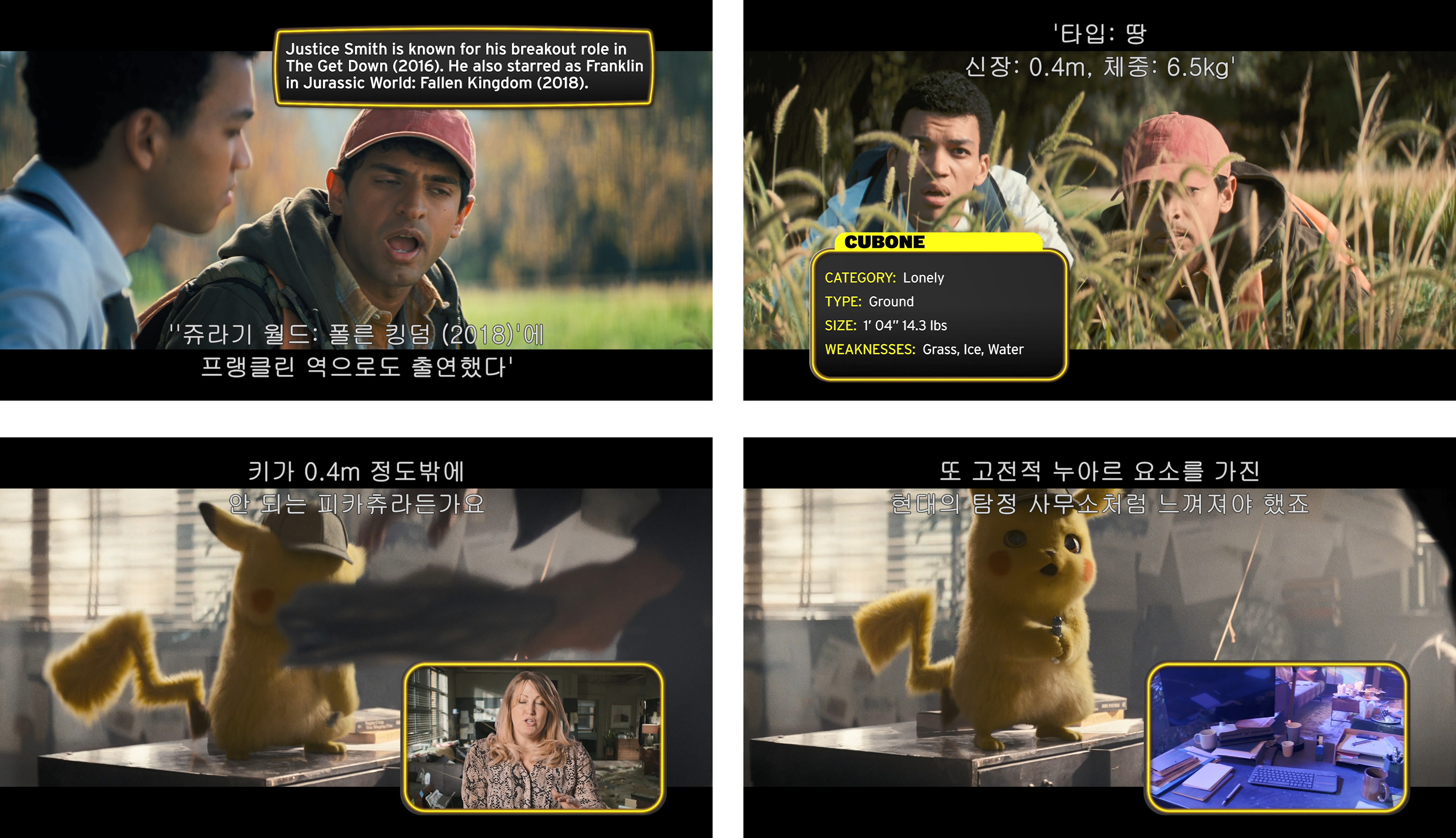 ‘Detective Mode’는 일종의 팝업 트랙으로 포켓몬 캐릭터의 능력치라든가 비하인드 스토리, 배우들의 신상명세 등 각종 이스터에그를 발견하도록 돕는다. 포켓몬에 대한 이해도가 부족한 분들이라면 유용할 만한 기능.