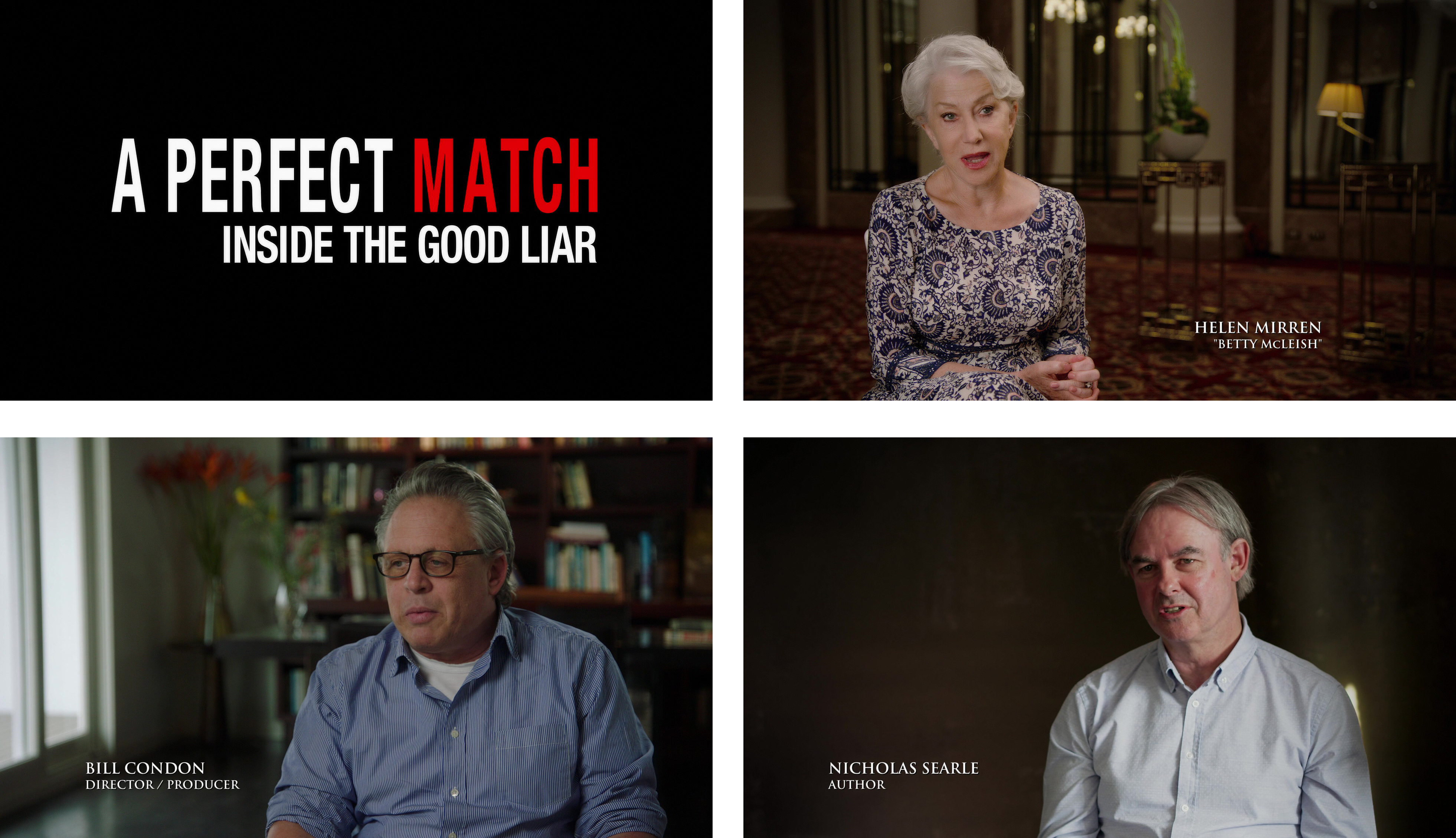 이제 다음으로는 “A Perfect Match: Inside the Good Liar”라는 영상으로 영화의 메이킹 필름에 해당한다. 영화가 만들어지게 된 계기는 제작자 그렉 욜렌이 흥미로운 책이 있으니 한번 읽어보라고 빌 콘돈에게 이메일을 보냈는데, 빌은 6시간 동안 비행기를 타고 오는 도중에 책을 다 읽었고 내용이 마음에 드니 당장 영화로 만들자고 했다고 한다.