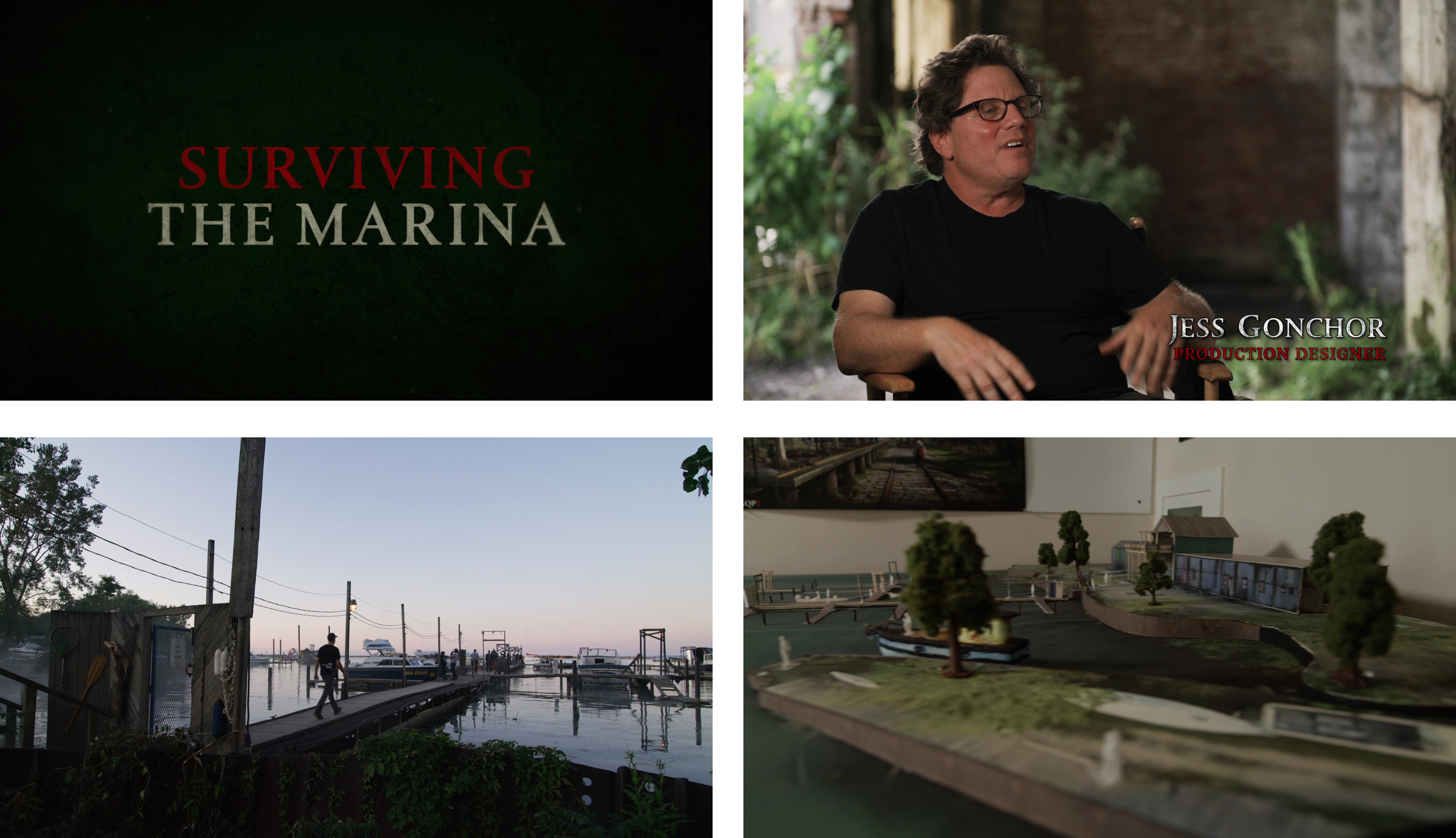 전편에 등장한 인물들 중 애봇의 가족 외에 유일한 인물은 숲 속에서 만난 노인 뿐인데 이번 작품에서는 꽤 많은 사람들이 더 혹독한 환경에서 버티고 있으며 그들이 애봇의 가족에게 어떠한 태도를 나타내는 가가 속편에서 매우 중요한 요소로 작용한다. 그 해답이 정박지 시퀀스에서 나오는데, ‘Surviving The Marina’는 영화에서 가장 긴장감 넘치는 장면 중 하나인 정박지 시퀀스에 대한 해설과 촬영장의 비하인드 스토리를 들려준다. 버팔로 남쪽에서 찾은 로케이션 장소는 마치 [죠스]같은 분위기를 풍겼다는 후문. (참고로 크래신스키가 가장 좋아하는 영화 중 하나가 바로 [죠스]다)