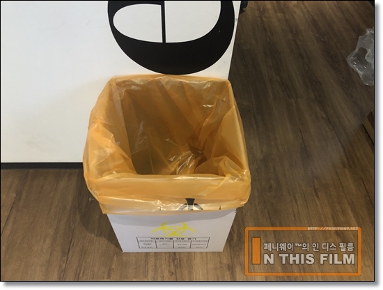 쓰레기는 하루 한 번 배출할 수 있는데, 지급된 박스를 만들어 의료폐기물용 봉투 두 장을 씌운 뒤 완전 밀봉하여 내놓는 방식이다. 음식물 쓰레기를 따로 버릴 수 있는 것이 아니라 나오는 모든 쓰레기를 여기에 넣어 배출해야 한다.