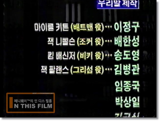 그 때문이었을까요? 개봉한지 불과 2년도 채 안된 1992년 2월 1일. 갓 개국한 신흥 방송국인 서울방송(SBS)에서 설날특집으로 [배트맨]을 전격 방영하게 됩니다. 당시 SBS는 인지도를 높히기 위해 개국특선 외화로 [나의 왼발]이나 [에이리언] 등의 화제작들을 연달아 방영하면서 공을 들였는데요, 직접 방송국에 전화를 해서 이번 설에 무슨 영화 하냐고 물어봤던 게 아직도 기억나네요. [배트맨]을 해준다는 안내원의 멘트에 얼마나 설레이던지요...
