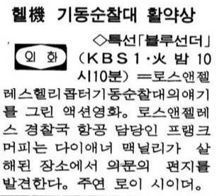 [블루썬더] 최초 방영 정보 : 1989년 2월 2일 밤 10:10 특선영화